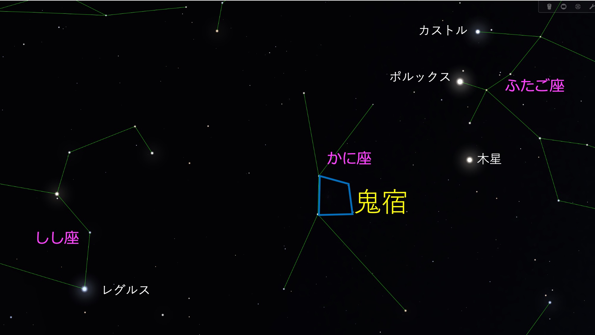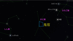 図1 鬼宿(かに座) (ステラリウムを用いて作図) http://www.shibatashinpei.jp/lib/yamashin/899-fig1.jpg