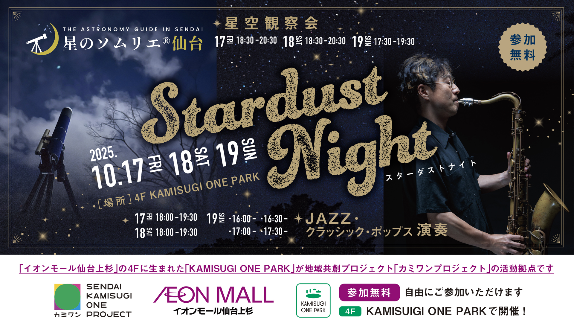 | ★ | 2025年10月17日 | StardustNight(10/17,18,19) @ イオンモール仙台上杉 / 星のソムリエ®仙台 ( pdf) | |