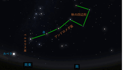 図1 10月上旬午後6時から7時頃の南の空(ステラリウムを用いて作図) http://www.shibatashinpei.jp/lib/yamashin/897-fig1.jpg